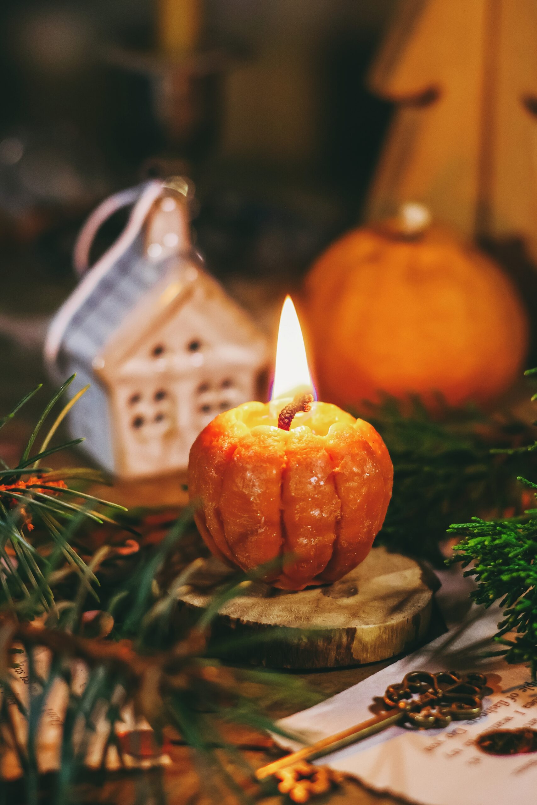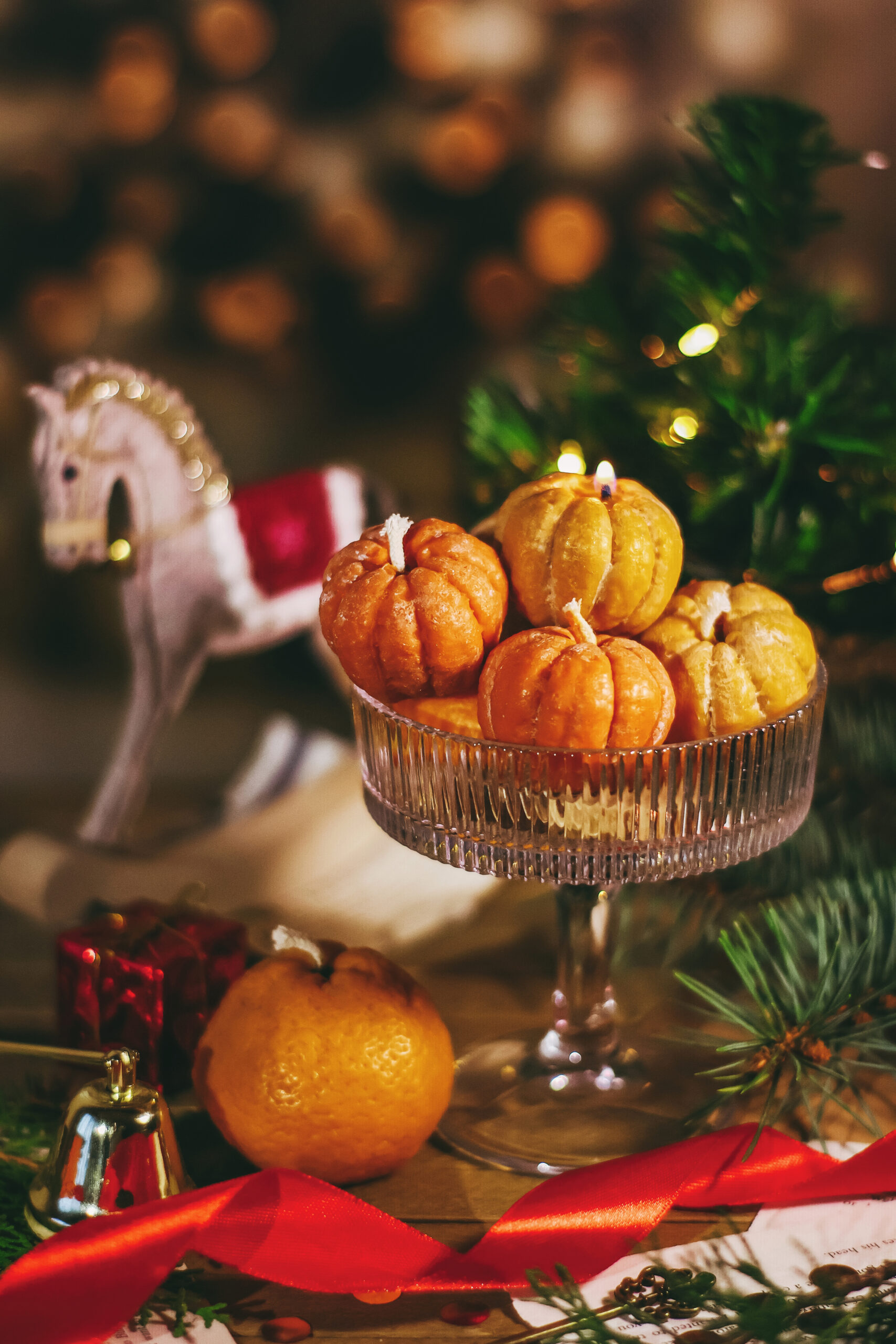 Наш маленький мандарин – це яскрава свічка, що несе в собі тепло сонця навіть у холодну пору. Її полум’я легке та святкове, ніби танцююча зірочка, що відкриває двері у дім, де панують радість і затишок.